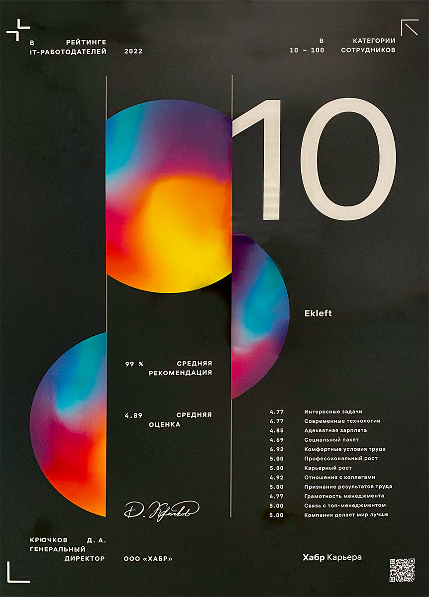 Ekleft — это ведущая команда в сфере ИТ-аутстаффинга в России. Целеустремленные, очень прагматичные и с огромной сетью ценных контактов в ИТ-индустрии. Они очень открыты к идеям и часто предлагают свои.